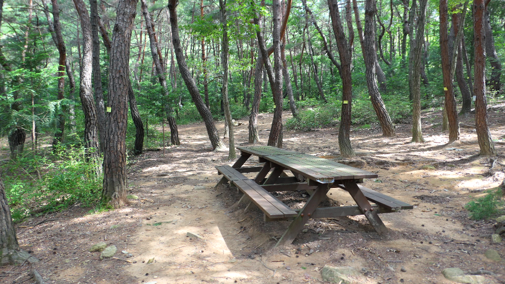 산림욕장 답게 군데군데 쉬어가기 좋도록 나무의자가 많이 설치되어 있다