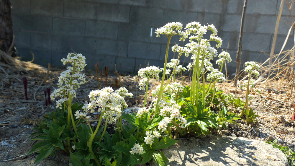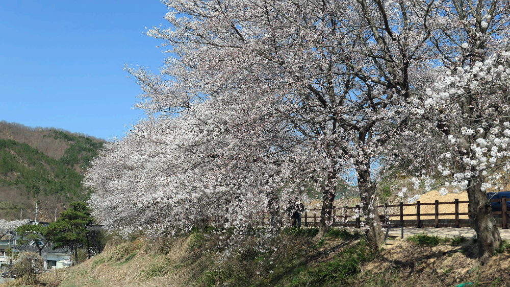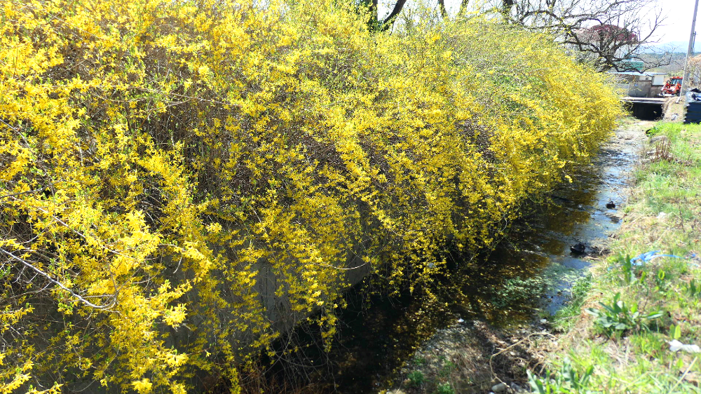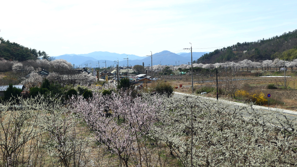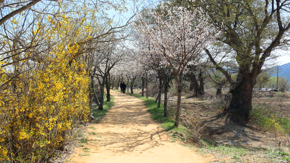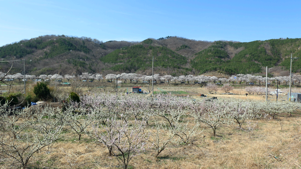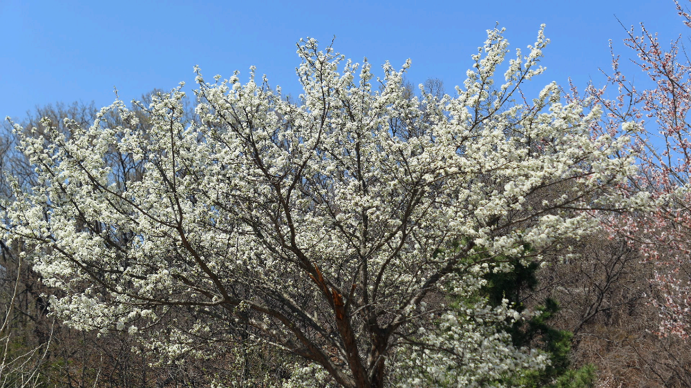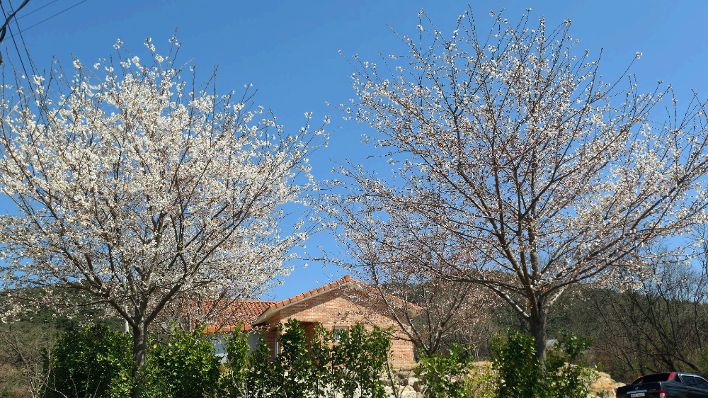 자두 복숭아 벚꽃 개나리가 한꺼번에 피었어요