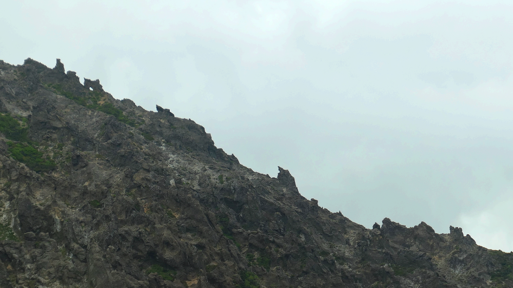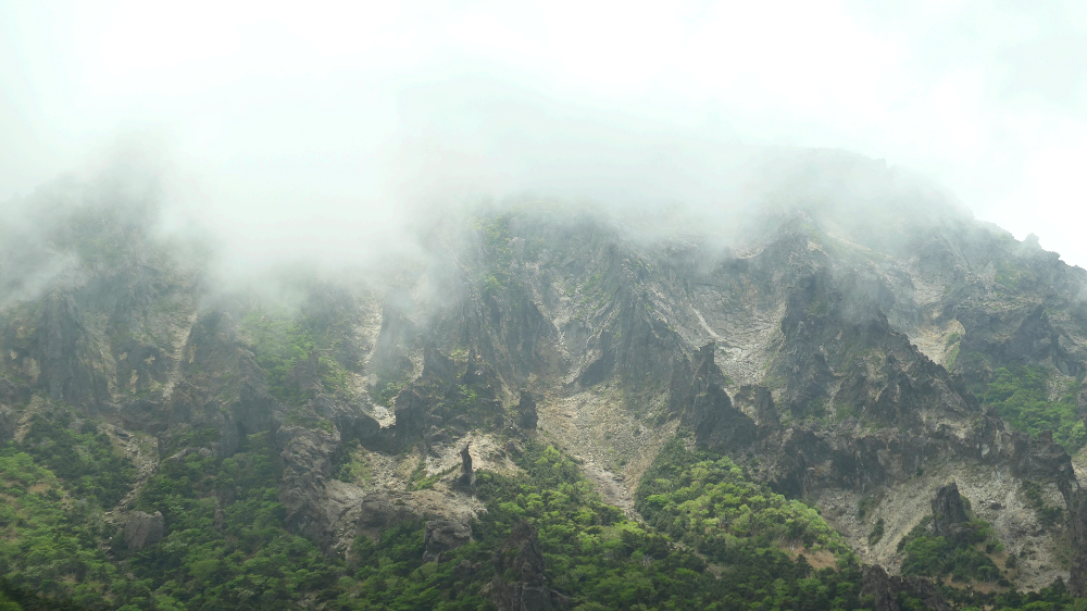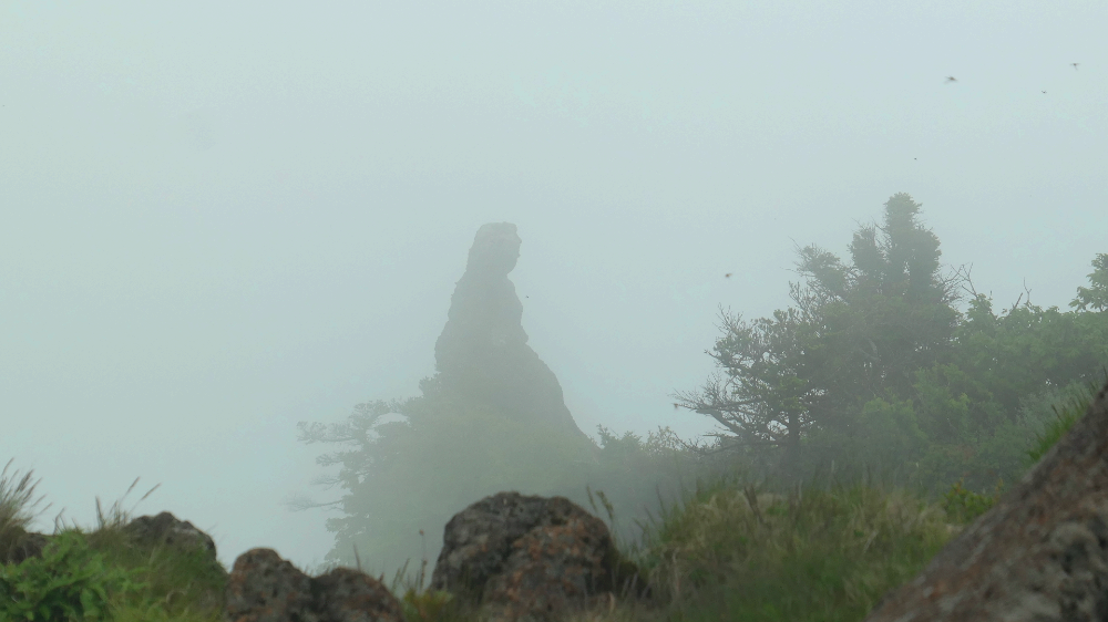 한라산 남벽에 구름이 왔다갔다 신선이 노니듯 놀고 있습니다