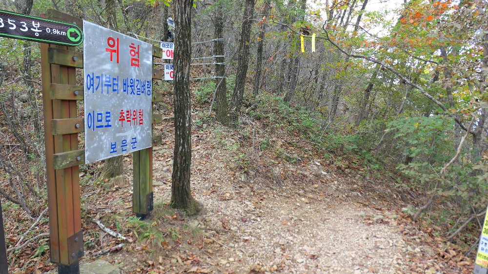 자갈길을 올라서니 구병산과 신선대갈림길에서 신선대갈림길로..
